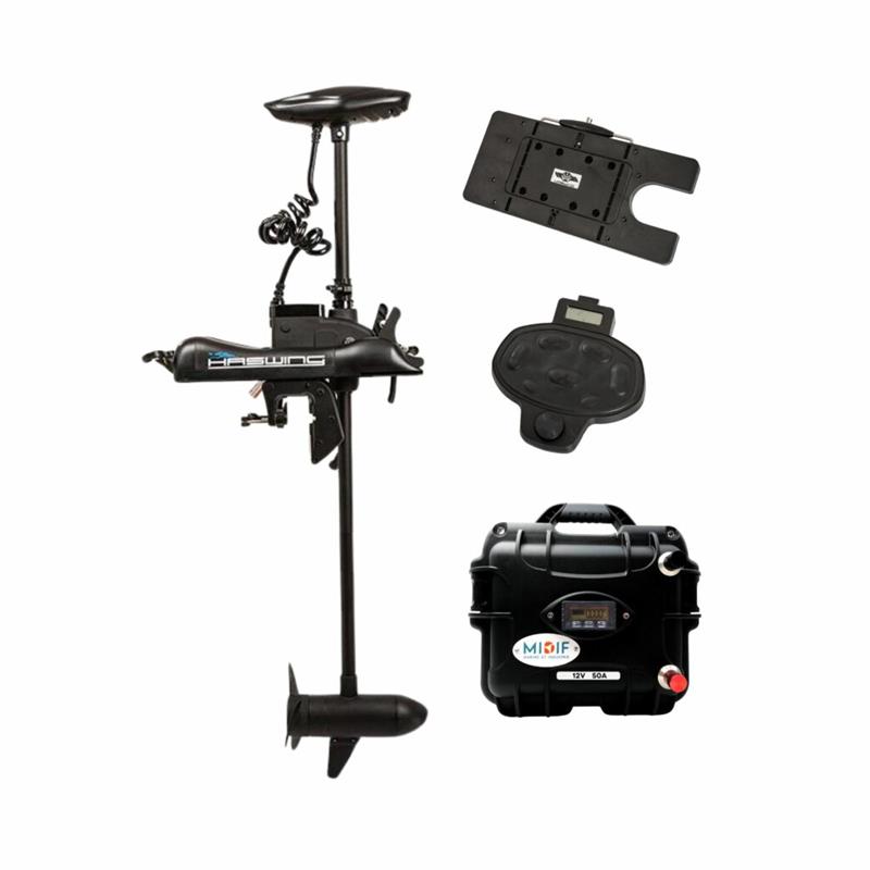 Pack Motor Haswing Cayman B55lbs 12V Avec Pédale Sans Fil, Télécommande, Plaque Quick Release Et Batterie Lithium 12V50amp + Chargeur