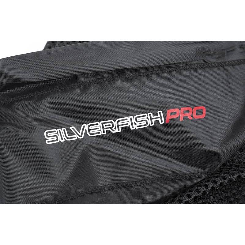 SILVERFISH PRO KEEPNETEsta bolsa de pesca Silverfish Pro está disponible en dos tamaños diferentes, 3m y 4m, lo que la hace ideal para la pesca en los estanques de carpa y la pesca en entornos naturales. En los bordes de la bolsa, hemos reforzado la tela y también en las esquinas de los aros para evitar cualquier daño en caso de roce con piedras u otros residuos. El anillo inferior de aluminio está protegido en todas las esquinas. Los anillos de aluminio en el fondo permiten que la red se hunda más rápido en aguas más profundas. El segundo anillo de la parte superior está cubierto con una tela suave de nylon con el logo para evitar que el anzuelo se enrede en la bolsa. Dos asas de tracción robustas con correas están ubicadas en el interior para facilitar el pesaje. La bolsa está equipada con un sistema de inclinación a presión y para un ajuste fácil.• Forma rectangular, 40x45cm con un anillo superior sobredimensionado de 50x40cm.• Anillo superior con tela de nylon• Los tres últimos anillos de aluminio protegen contra deformaciones• Secado rápido• Malla redonda de 5 mm, de secado rápido y duradero• Dos robustas tiras de agarre en el interior para el pesaje -• Bordes protegidos contra el desgaste y los desgarros• Equipado con doble rosca universal• Sistema sólido de inclinación ajustable por presión• Disponible en longitudes de 3m y 4m• Diseño especialmente elegante• Proporciona un aspecto profesional