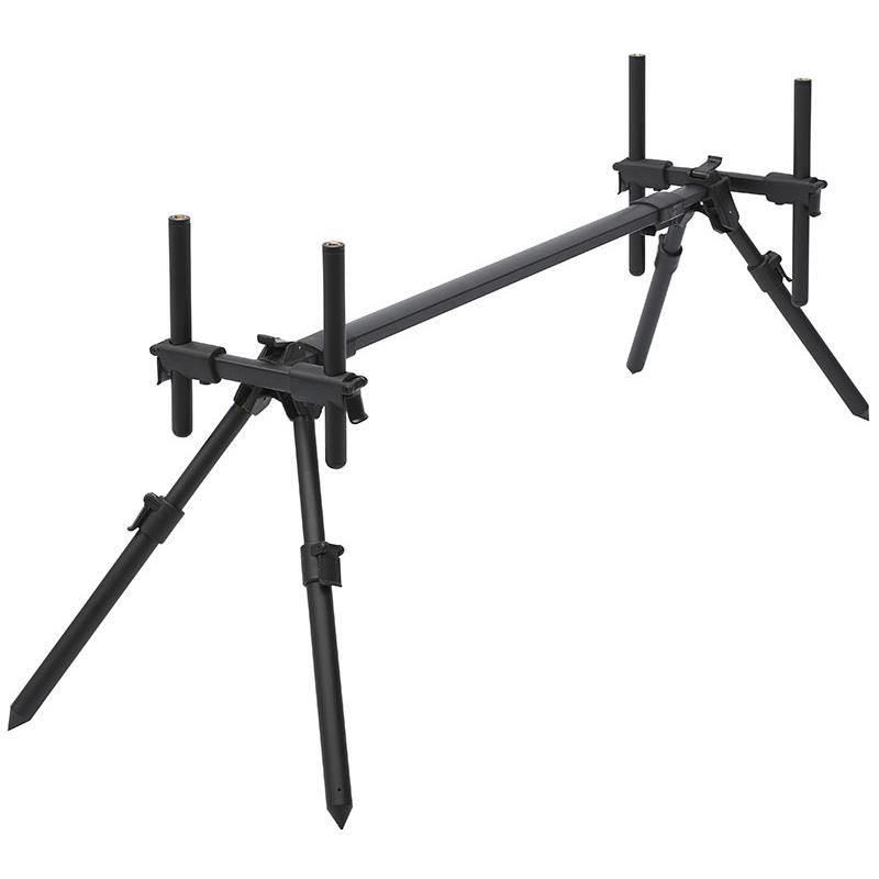 un rod pod 2 cañas compacto y muy polivalente que puede cubrir todas las situaciones de pesca. marco ligero y totalmente ajustable con opciones de inclinación de las patas en varios ángulos, permitiendo al pescador pescar con las puntas de las cañas muy altas o muy bajas hacia el suelo. las patas del rod pod son totalmente ajustables y se suministran con un juego de repuesto que ofrece diferentes longitudes para cubrir todas las eventualidades. al posicionar las cañas con las puntas completamente elevadas, se puede instalar el gancho estabilizador para asegurar aún más el rod pod. esto ofrece otras opciones de estabilidad mejorada, por ejemplo el pescador puede colgar un cubo lastrado o simplemente atarlo al suelo. los montantes del buzz-bar delantero permiten un mejor ajuste y pueden regularse finamente en consecuencia; lo mismo ocurre con el trasero, que se suministra con 2 copas de tope (para proteger el talón de las cañas).