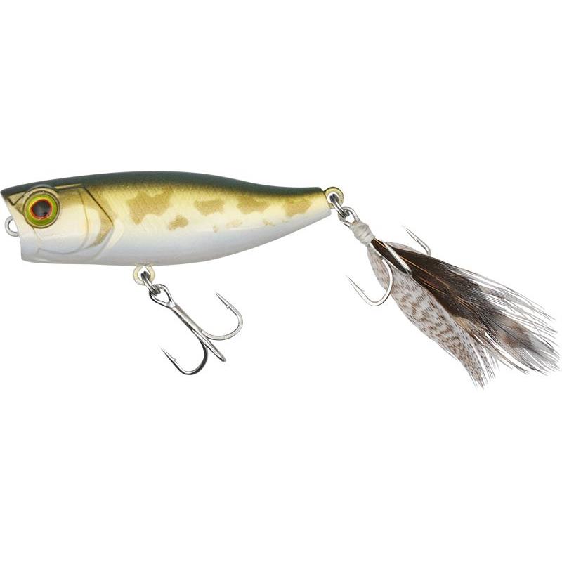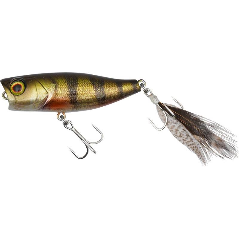 Esta versión del CHUBBY, un popper muy pequeño, es temible cuando los depredadores están concentrados en presas del mismo tamaño (anfibios, insectos y peces pequeños). Compacto y bien proporcionado, se lanza muy bien con una precisión desconcertante gracias a su lastre interno. Capaz de efectuar una natación tipo «Walking the Dog», el CHUBBY POPPER salpica y hace pop a la perfección para imitar lo mejor posible a los pequeños peces perseguidos y provocar el ataque de las percas. Como todo popper que se precie, debe ser eficaz al detenerse. Para perfeccionar la imitación con una cola de pez o con unas alas de insecto, el «feather hook» se monta como una mosca seca para burlar la desconfianza de los Black-Bass y de los chevesnes.