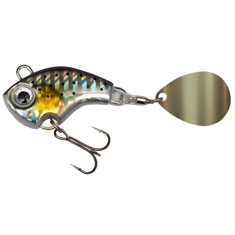 El cuerpo de zinc está diseñado para vibrar con fuerza, mientras que la cola con cuchilla giratoria gira rápidamente detrás del cebo.