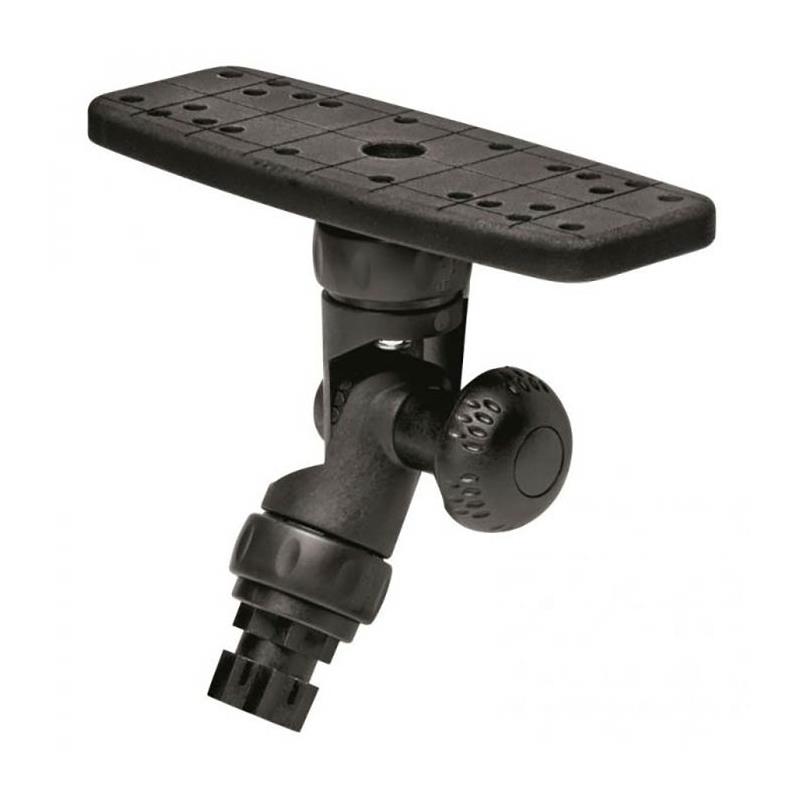 Para fijar ecosondas o trazadores GPS con soportes en U, facilitando su extracción. La extensión de 3 ejes permite un ajuste de 360°, gracias al sistema de bloqueo R-LOCK en la base y en la cumbre. Para sondas de hasta 1,5kg (3,3 lbs) • Dimensiones de la plataforma: 160 x 60 mm