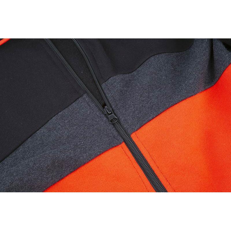 Estas sudaderas con capucha tricolor con cremallera son elegantes, cómodas y muy prácticas. Fabricadas a partir de tejido de 320 g/m², están compuestas de un 80 % de algodón y un 20 % de poliéster, lo que garantiza calor y comodidad. Las características adicionales incluyen una cremallera de longitud completa, puños elásticos, una capucha con cordón ajustable y bolsillos laterales con cierres de cremallera.