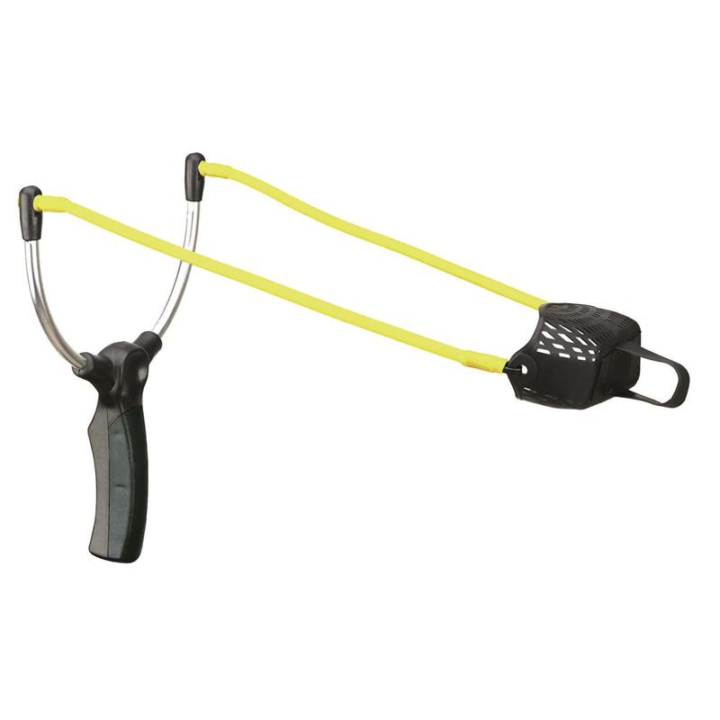 empuñadura cómoda. brazo de aluminio. elástico amarillo. bolsa blanda para boilies y semillas.