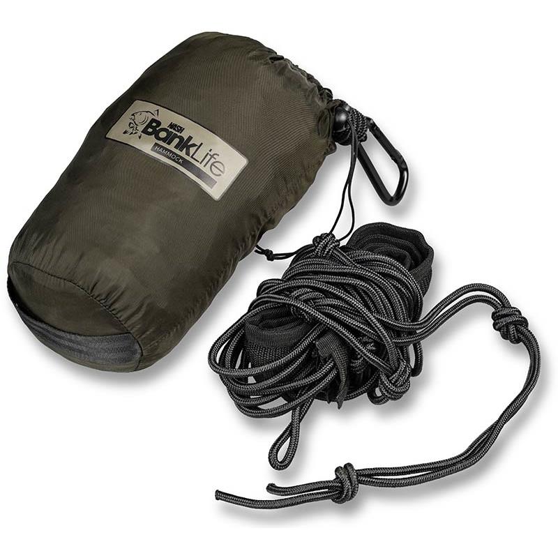 Accessoire idéal pour les baroudeurs, le hamac Bank Life offre une relaxation totale et un vrai moment de pleine conscience une fois le positionnement des cannes terminé.