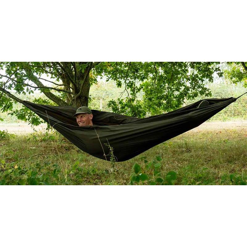 Généreusement surdimensionné et facile à installer quelles que soient les distances entre les arbres, aussi bien sur un poste qu’aux alentours, la hauteur et la tension du hamac peuvent être facilement ajustées selon vos préférences ainsi que votre taille et votre poids. Les dimensions du hamac permettent également de rabattre l’excédent de tissu sur vous afin d’augmenter la chaleur si nécessaire.