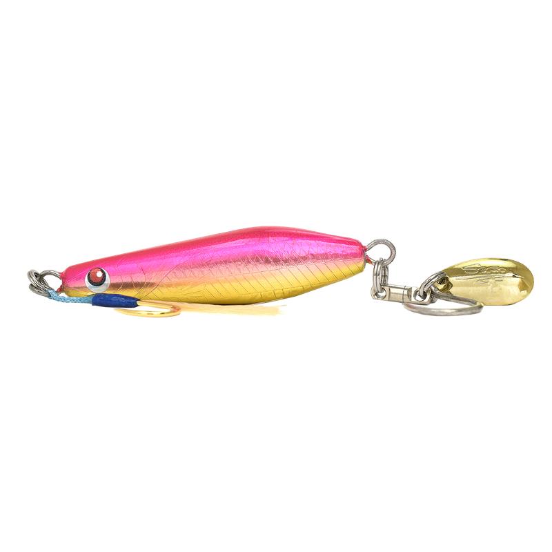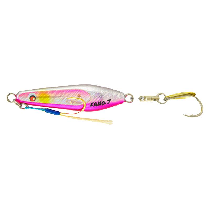 Avec sa forme évasée, le Fang Blade est un jig métallique conçu pour plonger rapidement dans la couche d’eau en papillonnant. Son centre de gravité en arrière lui procure une nage très stable sans rotation lors des tractions ou des récupérations linéaires. Il est équipé d’un assist hook simple en tête et d’un hameçon simple associé à une palette colorado, le tout monté sur un émerillon rolling en queue pour minimiser les risques de décrochage du poisson et assurer une parfaite rotation de l’ensemble.