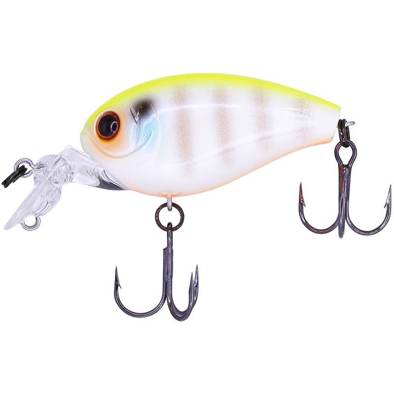 Son corps compact est parfait pour des présentations nesse dans des conditions de forte pression de pêche, mais ses performances restent puissantes. La forme spéci que du corps produit le wobbling caractéristique des crankbaits HU et conserve une forte résistance aux accrochages, même dans des structures naturelles ou arti cielles complexes. Qu’il descende lentement ou qu’il plonge rapidement avec un poids supplémentaire, il reste stable, réactif et réaliste.