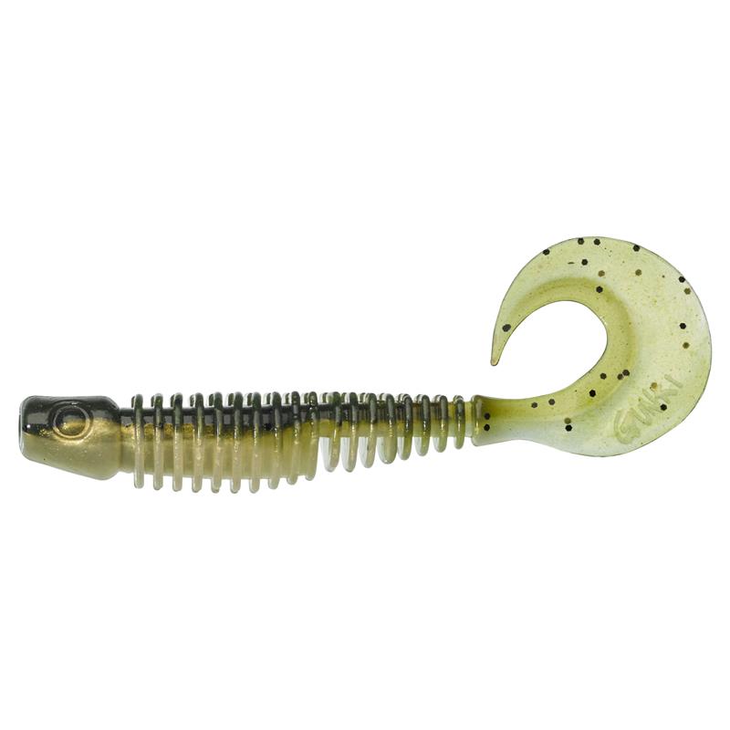 La queue en forme de faucille du TIPSY C-XL brasse beaucoup d’eau et émet des signaux qui seront détectés de très loin. Ramené en surface ou au-dessus des herbiers et des nénuphars, le leurre va faire un « buzzing » réveillant les poissons les plus apathiques. Sur le fond, au cœur des obstacles, il ne laissera pas non plus indifférent les carnassiers! A la descente, sans récupération, la queue tourne permettant des animations minimalistes. Ce TIPSY C-XL peut se monter sur une tête plombée classique ou encore avec un montage texan. Il tire très peu dans la canne mais déplace un bon volume d'eau ce qui est très intéressant quand les carnassiers sont peu sensibles aux vibrations fortes. La présence de fentes, son dos plat (pour une parfaite position de l’hameçon), et son ventre arrondi assurent une bonne stabilité dans l’eau. Un leurre d’une efficacité redoutable qui est également un excellent trailer à spinnerbait, rubber jig ou bladed jig! Arôme Anis.