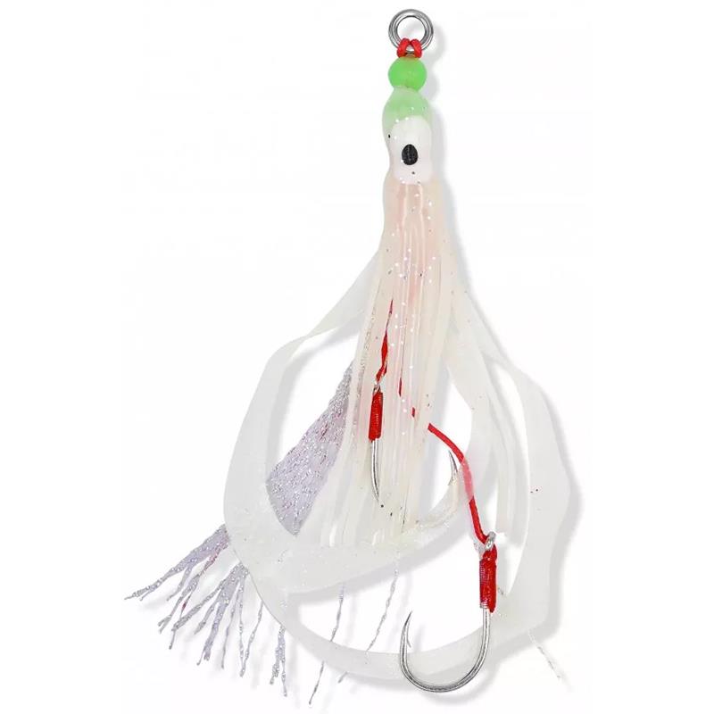 • Il est composé de Tinsels UV, de Curly en silicone et de perles avec un octopus ultra phosphorescents