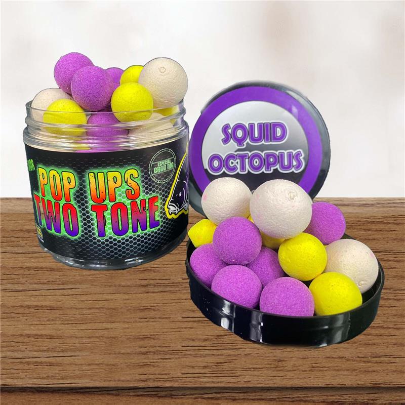 Appâts artificiels Fluor Pop ups Two Tone fabriqués en mélangeant deux arômes classiques et infaillibles tels que Squid & Octopus qui rendent fous la carpe.