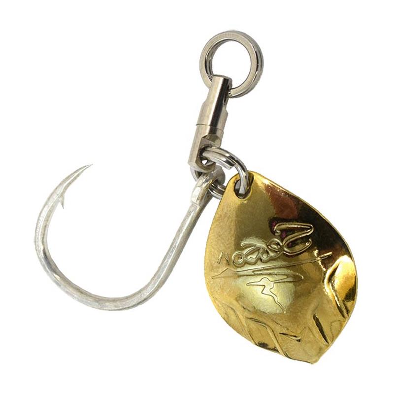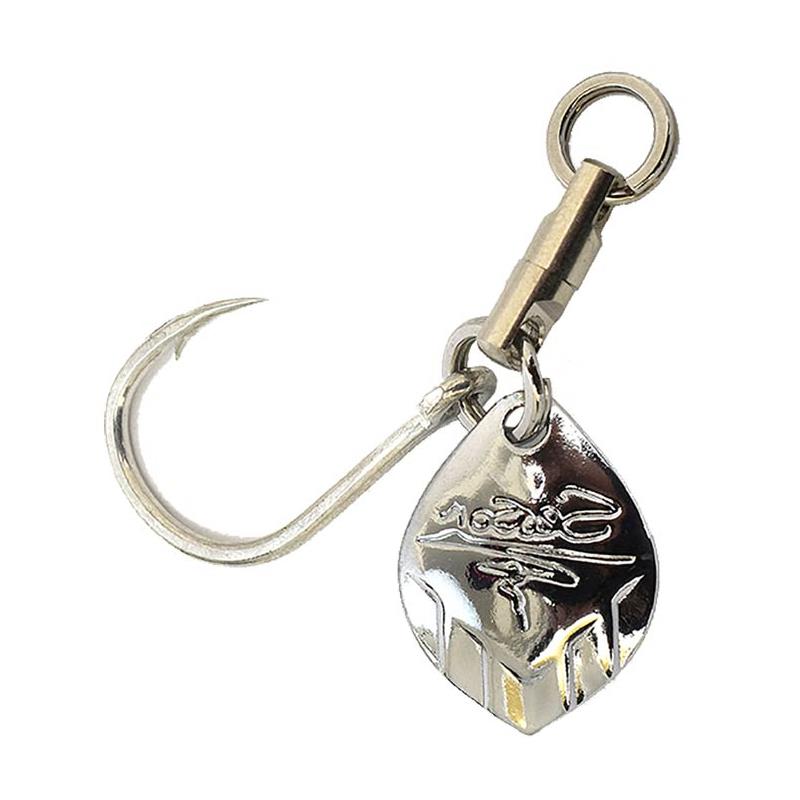 Le Turbo Fan est un hameçon simple très solide et ultra piquant associé à une palette « colorado », le tout monté sur un émerillon rolling dans le but d’assurer une parfaite rotation de l’ensemble sans vriller la ligne et minimiser les risques de décrochage. Il est idéal pour l’armement des jigs métalliques.