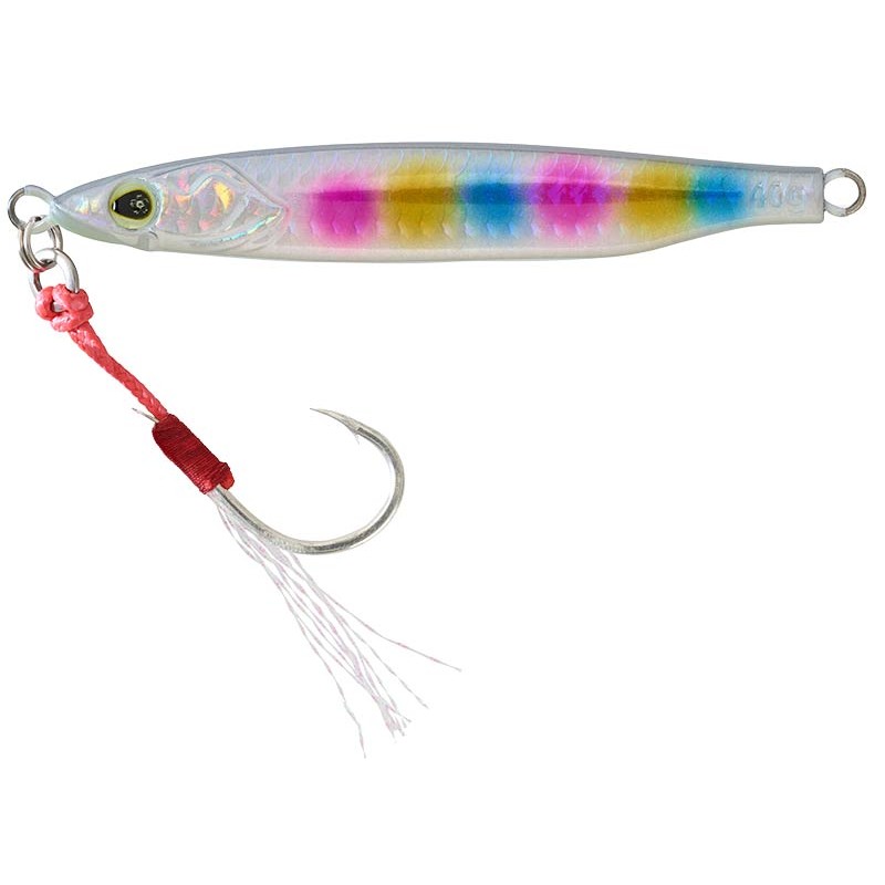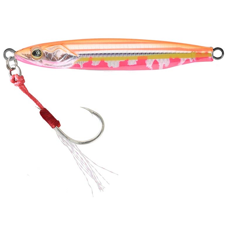 Nous avons intensifié les spectres lumineux grâce à un œil SAKURA phosphorescent et des coloris alliant phosphorescence et réactions aux rayons ultra-violet qui capte la lumière en profondeur pour mieux la restituer afin de rendre le LISA LOCA Zn hyper attractif à toutes les hauteurs d'eau. En ce qui concerne l'armement, selon leur taille, ces jigs sont équipés d'un simple ou d’un double Assist Hook en tête. Les hameçons ultra piquants et de large ouverture sont montés sur une corde à « Assist » de couleur rouge et ligaturés à la main avec quelques fibres de Krystal Flash. Ils sont capables de faire face à nombreuses espèces côtières et pélagiques.Le grammage de chaque leurre est gravé à l’arrière du jig de manière à visualiser rapidement celui qu’il vous faut dans une situation donnée.