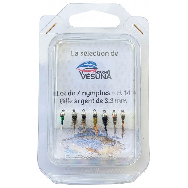 La meilleure sélection VESUNA pour ce pack de 7 Nymphes avec des corps différents soigneusement montés et adaptés pour répondre à toutes les situations au bord de l’eau.