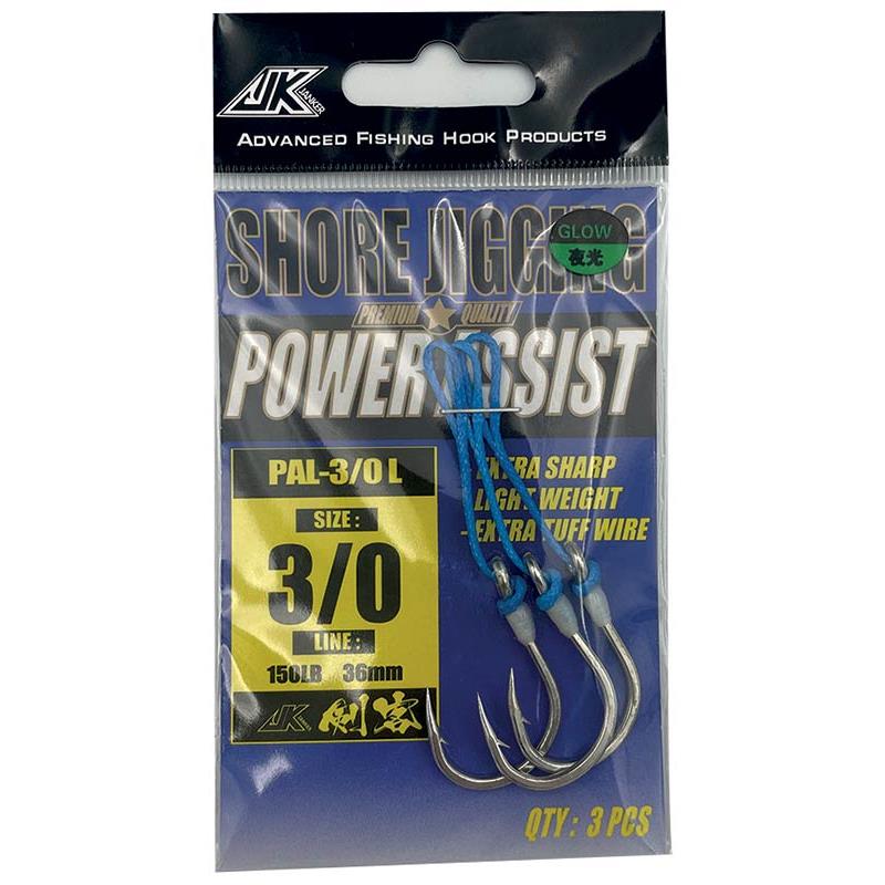 Ami assist per jigs, robusti in ferro, venduti in confezione da 3 per equipaggiare tutti i vostri jigs per pescate molto potenti. Treccia UV rinforzata da 150LBS in 330/100 legata e annodata. Ami trattati per uso marino e ultra affilati.