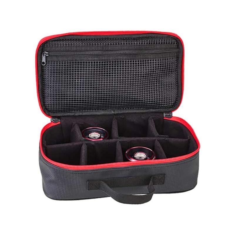 la pochette per bobine tournament surf è l'elemento di stoccaggio perfetto per bobine fino a 45mm di altezza. ospita 8 bobine proteggendole da qualsiasi tipo di danno. una tasca in mesh permette di riporre piccoli accessori come clip o piombi conici sganciabili. gli zip plastici sovradimensionati evitano che il sale deteriori il sistema di chiusura. i tessuti di alta qualità sono impermeabili.
