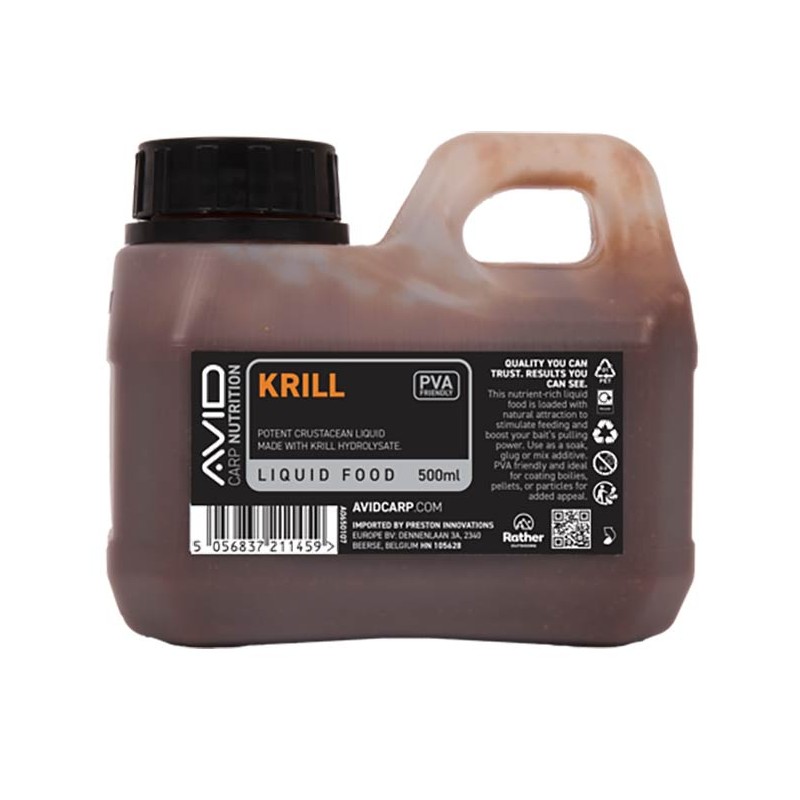 • progettato per migliorare l'efficacia delle boilies krill premium, questo potente liquido a base alimentare fonde un sapore di crostaceo ultra-attraente con un idrolizzato di krill ricco di nutrienti. • realizzato con gli stessi ingredienti di alta qualità delle boilies, arricchito con ingredienti attrattivi per una massima efficacia. • completamente compatibile con i sacchetti pva, il che lo rende ideale per l'uso in coating, per migliorare i mix da spod o per glassare le esche al fine di aumentarne l'attrattiva. • fornito in una bottiglia da 500 ml.