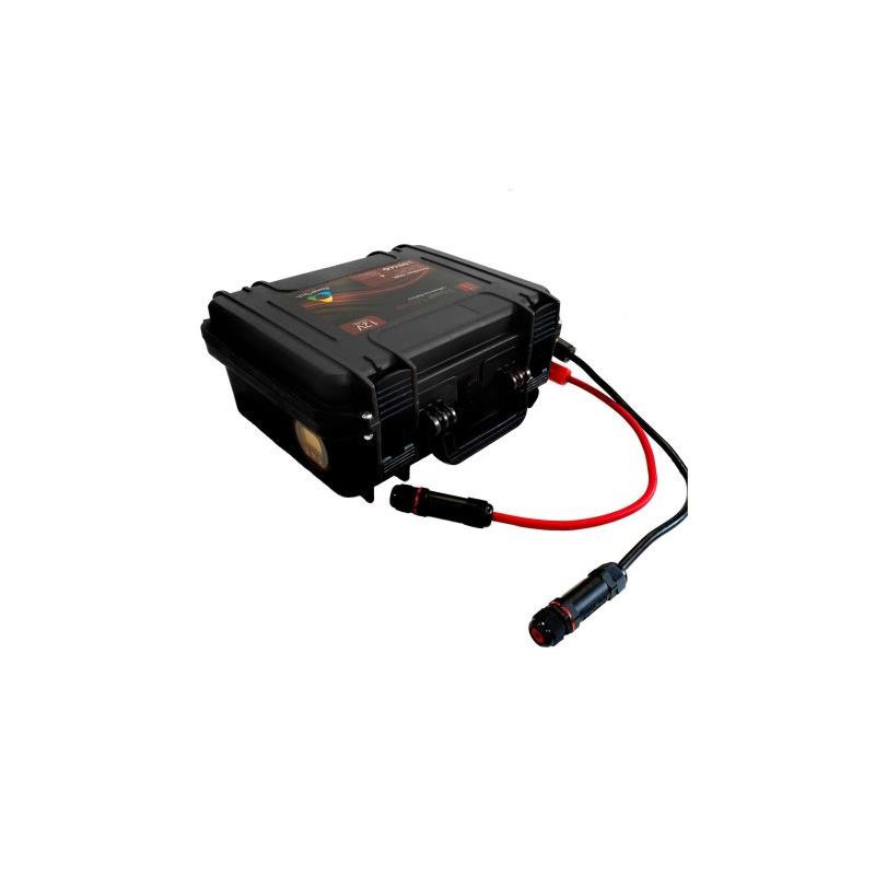 caratteristiche : • progettazione, fabbricazione e immagazzinamento in france • ip67 • uscita 12v stabilizzata per i consumatori ausiliari come mfd/ecoscandagli • caricabatterie con connessione ip67 fornito • indicatore di stato della batteria ad alta precisione • fornita con cavo e raccordi senza saldature e ultra affidabili • durata di vita ultra lunga : >5000 cicli • bms integrato. • scarica : -20°c --> 65°c (interruzione di sicurezza a 70°c all'interno della batteria) • carica : 0°c --> 65°c • funziona in qualsiasi posizione e anche in un locale chiuso senza necessità di ventilare. • tecnologia lifepo4 la più sicura sul mercato, senza metalli rari e riciclabile