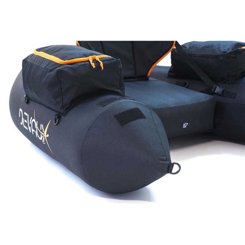 Frutto di una vera creazione, il kayak tube CAP-V1000 si distingue dai suoi omologhi convenzionali per la sua forma molto profilata e veramente inedita. Una forma particolarmente idrodinamica che lo rende più discreto ma che soprattutto ne aumenta la velocità di spostamento. Con i suoi 1,80m di lunghezza, il kayak tube CAP-V1000 è anche più stabile sull’acqua in condizioni di pesca difficili. È dotato di due grandi tasche laterali con rete porta-oggetti sul lato interno, di 4 anelli di fissaggio per portacanne e utensili. Il sedile dispone della propria camera gonfiabile per una migliore seduta. Lo schienale ergonomico è molto confortevole e regolabile tramite 2 cinghie laterali. Ogni galleggiante è individuale e possiede la propria valvola di gonfiaggio per maggiore sicurezza. Realizzato in tela di poliestere estremamente resistente e leggera, è molto compatto per una maggiore facilità di trasporto.