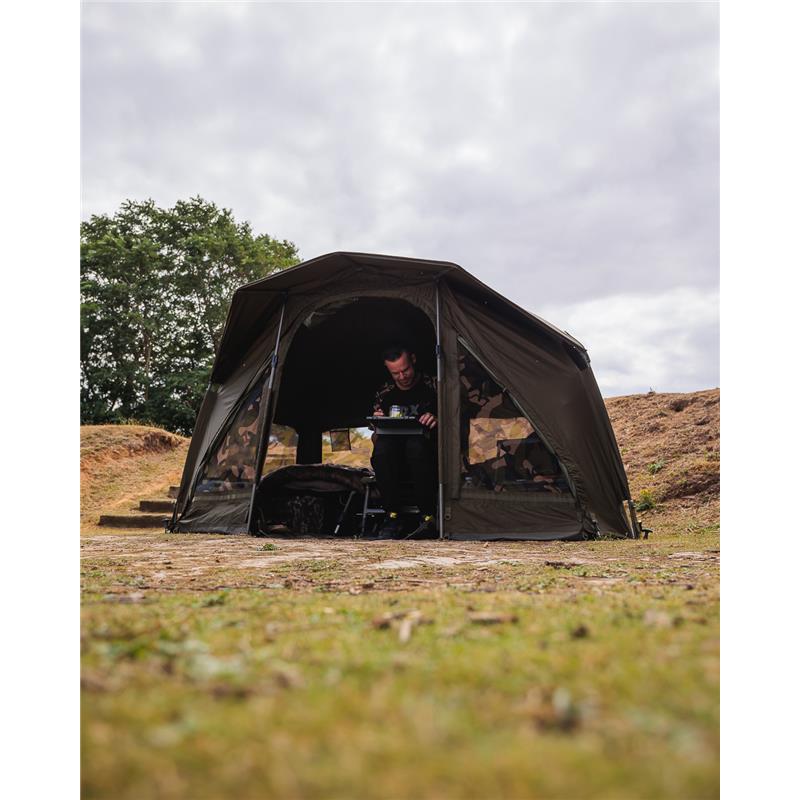 Le novità : • Il sistema ETS BOSS (Easy Tension System) è un sistema a cremagliera che impedisce il collasso della struttura durante l'installazione e rende il montaggio più fluido che mai. Il sistema ETS facilita lo smontaggio e lo stoccaggio. Abbiamo dotato il bivvy di nuovi blocchi angolari a molla con maniglie ergonomiche per garantire un'installazione più rapida. • Abbiamo ampliato la porta d'ingresso per una migliore visibilità e accessibilità, aggiunto aperture con zanzariere su ciascun lato della porta d'ingresso su tutti i modelli e incluso un tappeto da pavimento con zip per un fissaggio più semplice. Una zanzariera completa è disponibile opzionalmente (solo modelli X e XL) per una protezione ottimale. • D'ora in poi, tutti i modelli dispongono di quattro prese d'aria, tutte accessibili dall'interno con una zanzariera camo e opzioni di ancoraggio per mantenere la circolazione dell'aria anche in caso di pioggia. Abbiamo aggiunto aree di stoccaggio con due ganci aggiuntivi che completano le quattro tasche in rete e il gancio centrale. • È stato installato un nuovo sistema di montaggio rapido sull'asta tempesta robusta fornita con il bivvy. • Il telo esterno è ora fornito con ogni modello, non è necessario acquistarlo separatamente. • Le tre taglie di bivvy sono lanciate con una gamma completa di opzioni aggiuntive, che comprendono: pannello anteriore in zanzariera camo (ora con una porta tipo cassetta postale), casquette deluxe – prolunga il tetto di 60 cm, si adatta a due bedchairs e trasforma il bivvy in un riparo per 2 persone, e dispone di prese d'aria allineate, punti di ancoraggio per l'asta tempesta e un fissaggio facile tramite Velcro + D-Loop. Extension deluxe – estensione di 1,5 m anteriormente ora con un telo esterno completo per bivvy per un isolamento a doppia pelle e una ridotta condensazione. Quattro pannelli rimovibili lo trasformano in casquette quando necessario. E la sottotela in maglia interna (per X e XL)