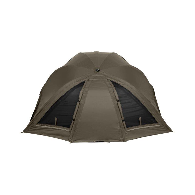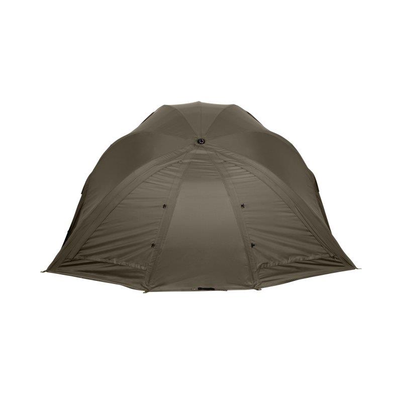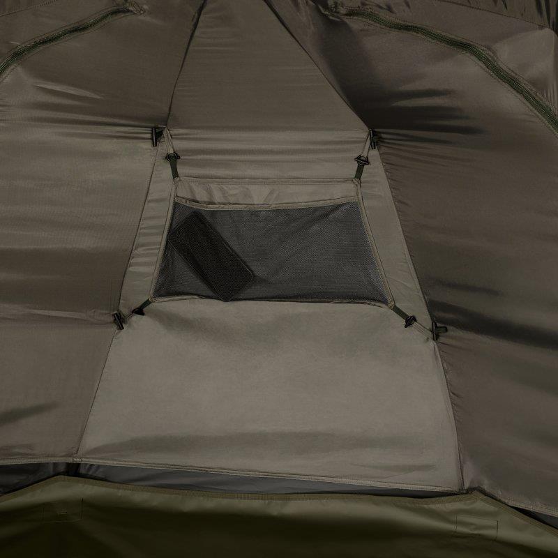 La versatilità e la mobilità sono i principi fondamentali di questo brolly da 55 pollici. Il telaio in acciaio ad alta resistenza, poco ingombrante, abbinato a una nona stecca aggiuntiva, offre un'altezza interna aumentata in questo riparo compatto. Un retro dalla forma ottimizzata e i lati inclinati massimizzano lo spazio interno per il tuo bedchair e la tua attrezzatura. Il tessuto esterno è realizzato con il materiale Aquatexx di Trakker, leader sul mercato, che è traspirante e dotato di cuciture completamente impermeabili, offrendo una colonna d'acqua impressionante di 25 000 mm. Ne risulta un riparo impermeabile e durevole. Una grande aerazione posteriore e due prese d'aria anteriori con sistema di ventilazione adattativa assicurano una buona circolazione dell'aria durante i mesi estivi. Un leggero antivapore interno completa il sistema di ventilazione per neutralizzare la condensa. Due tasche di stivaggio interne sono situate nella parte anteriore del riparo e una tasca removibile aggiuntiva si trova posteriormente, sull'antivapore. Il sistema Brolly viene fornito con tutto il necessario per affrontare gli elementi: brolly, pannello frontale, tappetino da terra, quattro pali da tempesta, picchetti e sacca da trasporto. Importante : Sconsigliamo vivamente l’utilizzo di riscaldatori, fornelli, candele o qualsiasi altra fonte di calore o fiamma libera all'interno del tuo riparo. Esiste un rischio significativo di avvelenamento da monossido di carbonio, di incendio o di danneggiamento del tuo riparo. Si prega di cucinare all'esterno.