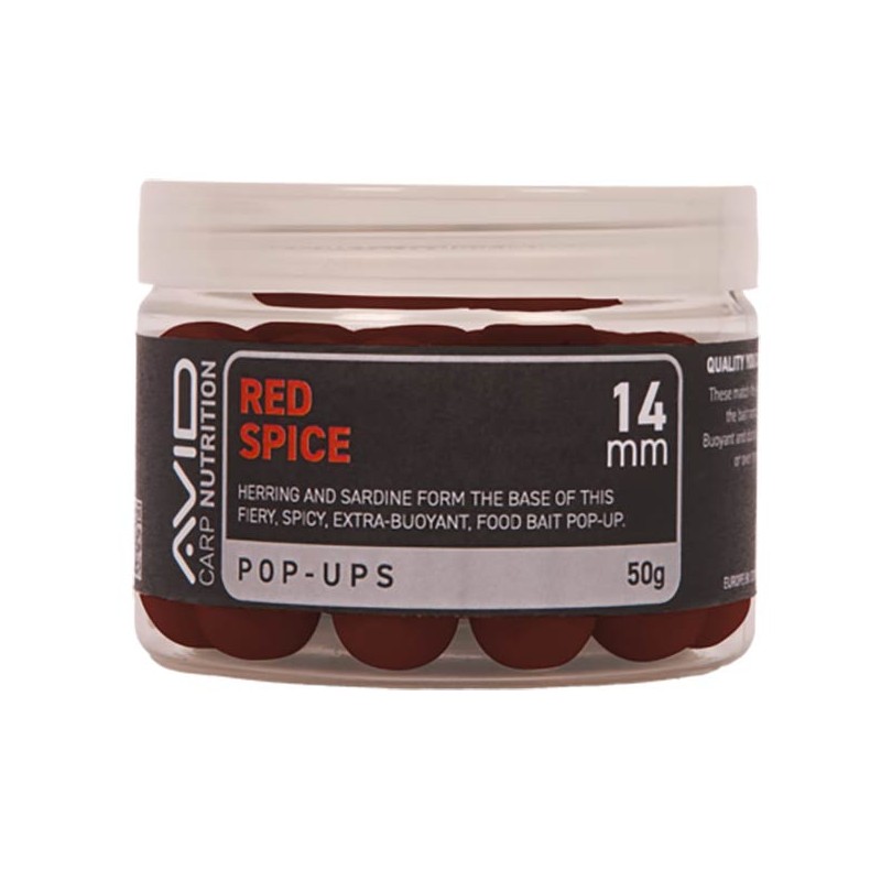 • pop-up ultra-galleggianti progettate per completare perfettamente le boilies premium red spice e offrendo caratteristiche ancora più potenti per attirare le carpe. • disponibile in una taglia versatile da 14 mm. • formulate con gli stessi ingredienti di qualità superiore delle esche, combinate con ingredienti altamente attrattivi per massimizzare l'efficacia. • ideale per tutte le configurazioni pop-up popolari, tra cui il ronnie rig, il multi rig, il chod rig e il hinge rig.