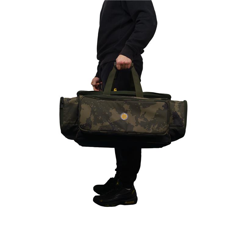 • Realizzata in tessuto Worldwide camo 600D con rivestimento PU • Ampio scomparto principale • Due grandi tasche laterali e una piccola tasca frontale • Doppie maniglie e tracolla imbottita regolabile • Base in PVC resistente e impermeabile • Doppie cerniere su tutte le tasche • Dimensioni dello scomparto principale (cm) : 55 × 36 × 30 • Dimensioni totali (cm) : 70 × 45 × 32 • Capacità : 60 litri