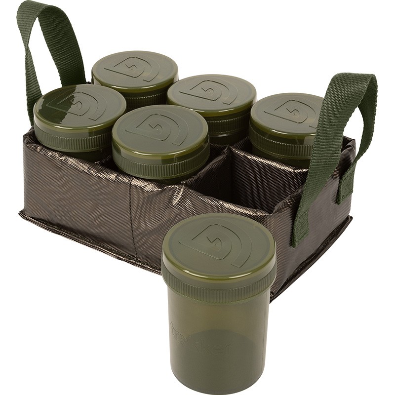 La borsa è fornita con sei contenitori a tenuta stagna, all'interno di un vassoio rimovibile isolato, il che vi permette di riporre esche o accessori supplementari nel compartimento principale, che è foderato con il nostro rivestimento termico ad alta densità Chilla e un interno in PVC rimovibile che può essere facilmente pulito.