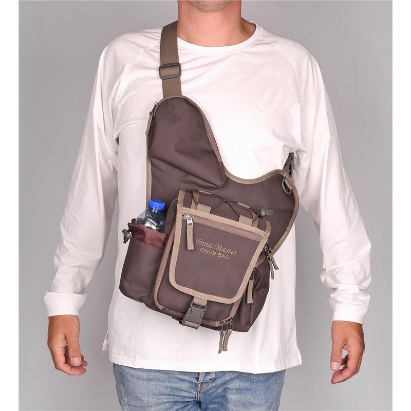 Il River Bag è una borsa a tracolla confortevole che può essere facilmente spostata dalla schiena alla parte anteriore per consentire l'accesso senza dover togliere la borsa. La borsa è dotata di un portabottiglie e di 3 tasche pratiche per i piccoli accessori, una delle quali contiene una piastra in EVA per riporre le tue esche e i tuoi cucchiaini. Un ampio scomparto principale consente di riporre le scatole da pesca. La borsa dispone inoltre di un anello a D in posizione robusta per una rete da pesca o altri accessori.