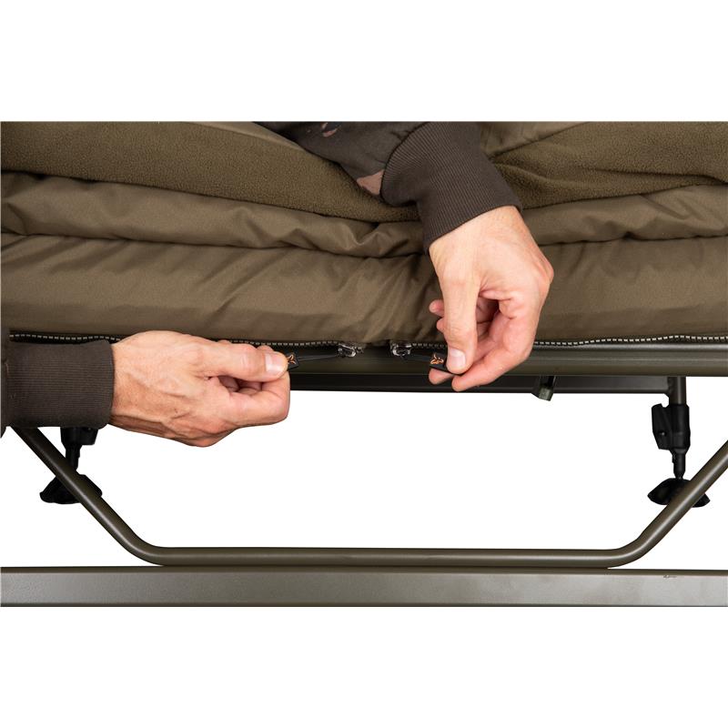 Il bedchair Flatliner X in schiuma memory foam è una versione migliorata del popolare Flatliner X, progettata per un comfort e una stabilità ottimali. Dotato di quattro piedi doppi per un supporto rinforzato e di un materasso in schiuma memory foam da 60 mm, questo bedchair garantisce una notte di sonno lussuosa. Il materasso in pile morbido e senza cuciture massimizza la superficie di riposo, mentre il sistema di sonno tutto-in-uno include un sacco a pelo Ventec All Season completamente zippabile, offrendo un calore personalizzabile per le diverse stagioni. Funzionalità pratiche come piedi regolabili in altezza, un sistema di cinghie di tensione e un supporto per cuscino rendono questo bedchair la scelta perfetta per ogni pescatore in cerca di comfort, affidabilità e calore durante tutto l'anno.