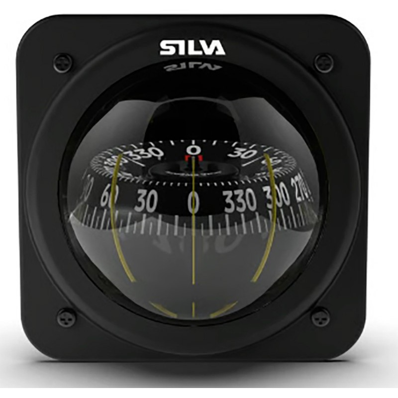 Caratteristiche : • Rosa conica nera 100 mm • Installazione facile • Su quasi tutte le inclinazioni • Tre alidade • Angolo di beccheggio illimitato • Lettura possibile dall'esterno e dall'interno dell'imbarcazione • Dimensioni (mm) = Larg. 128mm x 128mm • Rosa conica da 100mm • Foratura : Ø 115mm • Colore : Nero