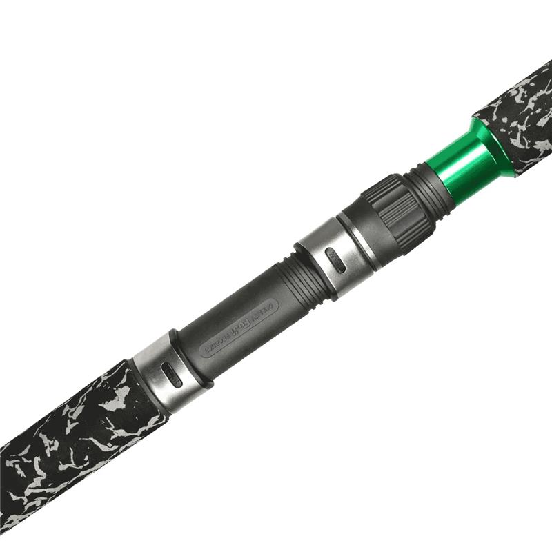 la impugnatura è stata modificata anch'essa. il tallone è leggermente più corto e l'impugnatura da combattimento davanti al portamulinello è più lunga. il che permette al pescatore di maneggiare la canna più facilmente davanti al proprio corpo. naturalmente, la v-stick+ può essere utilizzata con mulinelli a tamburo fisso e mulinelli a tamburo rotante, proprio come il nostro vr5 per esempio.