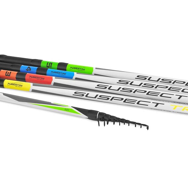 I Suspect, disponibili in cinque modelli diversi, sono canne telescopiche per la pesca della trota nei laghi. Grazie all'uso di fibre di carbonio a modulo intermedio e all'impiego di puntali solidi di alta qualità, hanno azioni molto ben calibrate sui lanci indicati e una sensibilità estrema. Ogni canna è facilmente riconoscibile grazie agli inserti di diversi colori, l'impugnatura è ricoperta di Light Rubber per un'ottima presa e gli anelli sono dotati di pietra SiC.