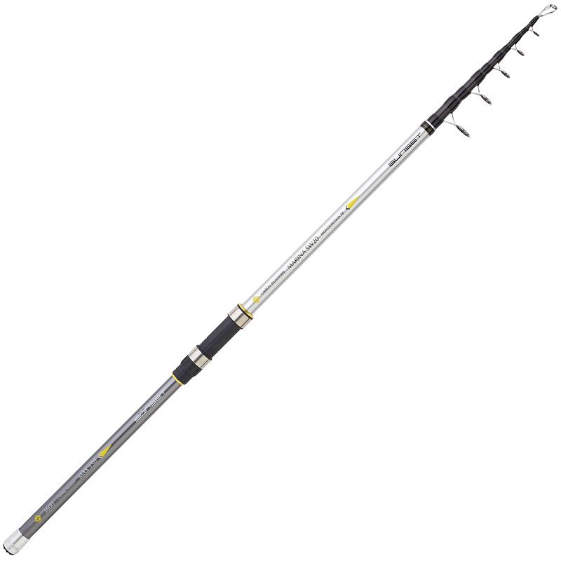 le canne sunset marina sw20 possiedono un blank telescopico in carbonio "technifibre" 24t, un pomello in alluminio, un manico verniciato, un portaschermo porta-mulinello tubolare argentato, anelli legati SIC, uno scion buscle multicolore in fibra di vetro piena per una massima sensibilità e una rilevazione ottimale delle abboccate e una custodia in tessuto. le canne marina sw20 permettono di praticare la pesca in mare alla ricerca degli sparidi dalle moli e dalle dighe. le canne telescopiche sunset marina sw20 sono munite di un blank in carbonio e di uno scion buscle multicolore in fibra di vetro piena per una rilevazione ottimale delle abboccate più discrete! disponibili in 1 taglia : 3607.