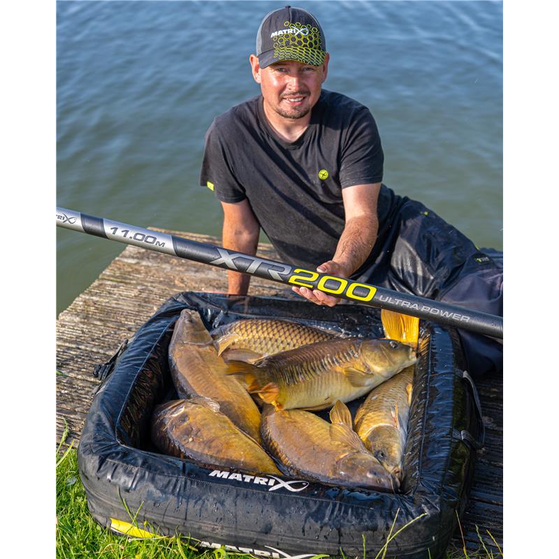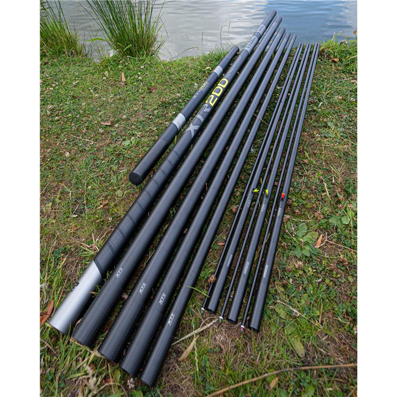 Contenuto del pack : • Canna XTR200 Ultra Power 11 m • 3 kit Power Standard (di cui uno fornito montato nella canna) • 1 mini estensione (compatibile 11 m) • Fodero protettivo XTR