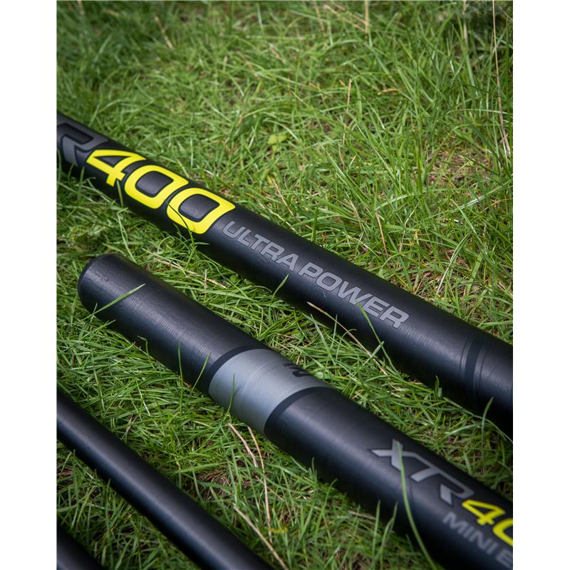 Contenuto del GPO296 - XTR400 Ultra Power 14.5m Package : • Canna XTR400 Ultra Power 14,5 m • 2 kit Match Standard (di cui uno fornito montato nella canna) • 3 kit Power Standard • 1 kit di sondaggio estensibile Twist Lock • Set di coppette d'innesco • 1 mini estensione (compatibile con 13 m e 14,5 m) • Fodero XTR