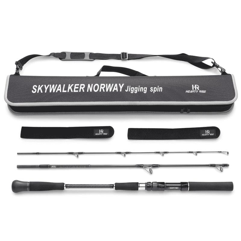 613S/180 : Il nostro Skywalker Norway Jigging Spin 613S/180 in tre sezioni è stato appositamente progettato per la pesca in mare impegnativa intorno alla Norvegia e al Co. Con una lunghezza totale di 1,87 M e un peso di lancio versatile da 60 a 180 G, il modello è ideale per il pilking più leggero e la pesca a lancio da una barca. Il potente e altamente sviluppato Carbon Blank NET-V III consente di presentare in modo attraente esche fino a 180G e offre la massima sensibilità e trasmissione. Il set di anelli Fuji Alconite di alta qualità permette alla vostra lenza di scorrere quasi senza attrito attraverso gli anelli della canna - meno attrito, distanze di lancio massime e una migliore trasmissione! Anche gli attacchi più timidi dei predatori in grandi profondità non passeranno più inosservati con il nostro Skywalker Norway Jigging Spin 613S/180. La colonna vertebrale dispone di sufficienti riserve di forza per resistere anche ai pesci marini più grandi, come i grossi merluzzi. La canna si adatta a quasi tutte le valigie grazie alla sua suddivisione e alla sua piccola lunghezza di trasporto di soli 75 cm. Il design dello Skywalker Norway Jigging Spin 613S/180 è sportivo, moderno, le finiture decorative di colore argentato brillano e sottolineano sottilmente l'alta qualità di questo modello. L'impugnatura nera in EVA dalla forma ergonomica è comoda da tenere e vi offre la presa necessaria durante la lotta contro i grossi pesci marini.