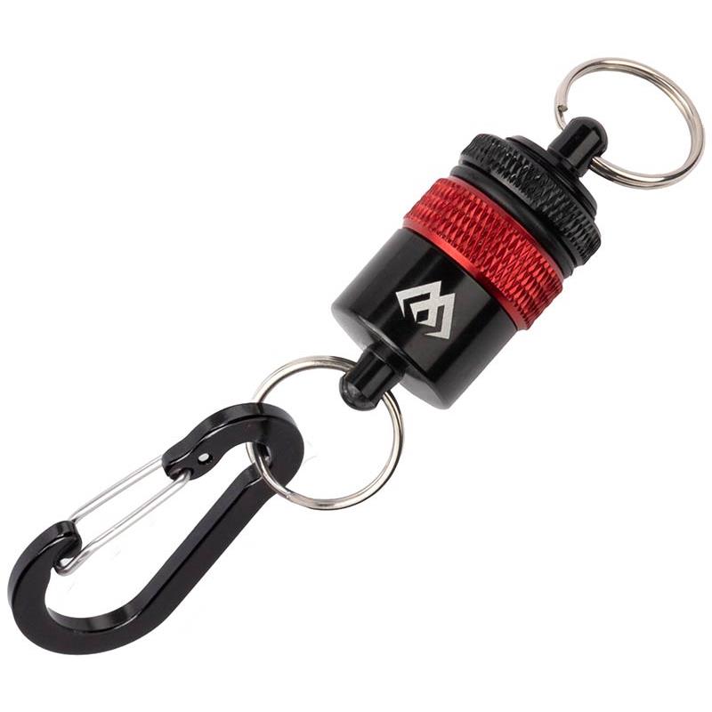 clip magnetico di alta qualità con forza di magnetizzazione regolabile da 3 a 6 kg. permette di fissare saldamente un guadino o altri accessori a seconda delle necessità. fornito con due moschettoni.