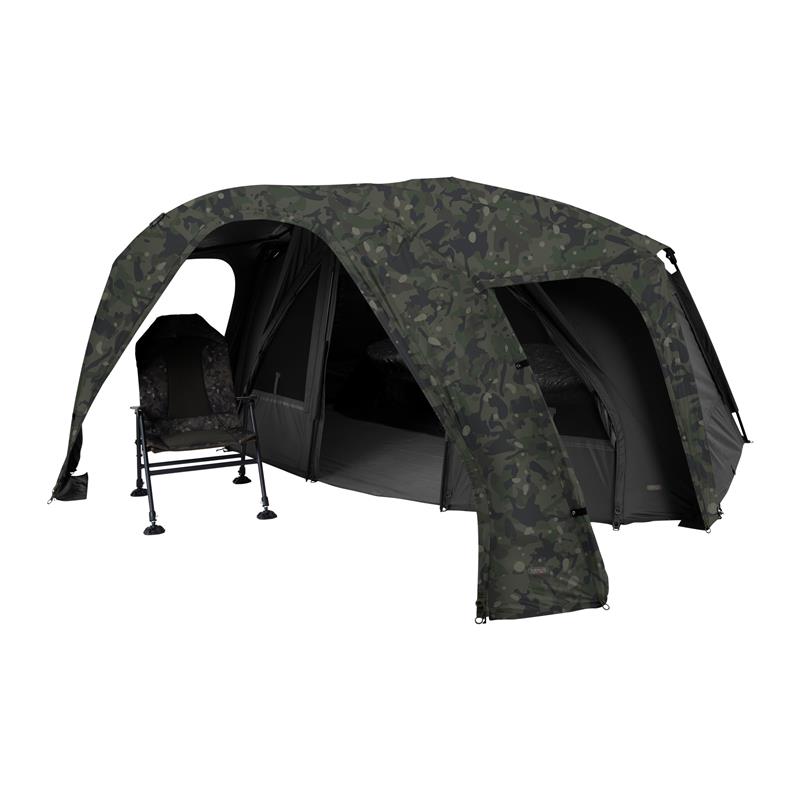 • Progettato specificamente per il Tempest RS Camo 150 • Crea un portico di 1,2 m davanti al riparo, offrendo uno spazio aggiuntivo per rilassarsi e riporre effetti personali • Alette laterali gemelle per favorire la circolazione dell'aria e ridurre la condensa • Tessuto migliorato Aquatexx™ : sistema traspirante multistrato con trattamento idrorepellente superiore e pigmento nero per ridurre luce e calore • Doppie fasce magnetiche per canne • Aste in alluminio preformate da 16 mm con rivestimento in polvere nero • Fornito con picchetti a T, una cinghia di tensione e una sacca da trasporto con zip Aquatexx™