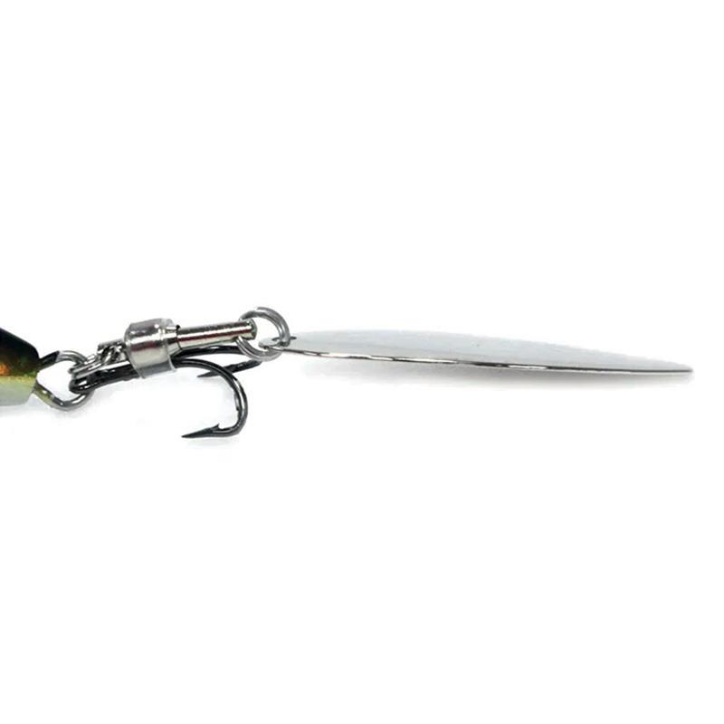 Uno spintail da 30gr eccellente per una prospezione rapida in acqua libera (dolce o salata) che propone una splendida innovazione per evitare le abboccate “corte” mancate: l'AXE BLADE è dotato di un amo doppio appena sotto il cucchiaio rotante. La sua concezione unica non interferisce né con l'azione della lama, né con quella del cucchiaio. Un'esca ideale per mirare i pesci sospesi. Contate fino alla profondità desiderata, recuperatelo lentamente fino alla barca e lasciate lavorare l'AXE BLADE.