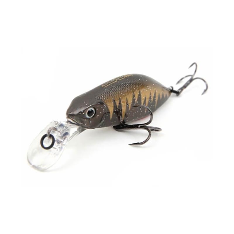 Questo piccolo minnow affondante possiede un corpo piatto con un dorso arcuato e una bavetta decentrata. Può pescare controcorrente per esplorare i punti a monte recuperando rapidamente, oppure nuotare sul fondo del fiume recuperando più lentamente. Propone azioni impossibili da realizzare con un minnow galleggiante. Nuoterà naturalmente al contatto con l'acqua. La progettazione del suo corpo piatto gli conferisce tenuta e una nuotata anche in forte corrente. Un prodotto di tipo pesante da 6,6 g per una lunghezza di 55mm, è dotato di un peso in tungsteno, che provoca un rumore sordo. Permette all'utilizzatore di mirare a qualsiasi strato d'acqua. La distribuzione del peso è concentrata nella parte posteriore, il che la rende efficace per un lancio preciso. (Peso tungsteno)