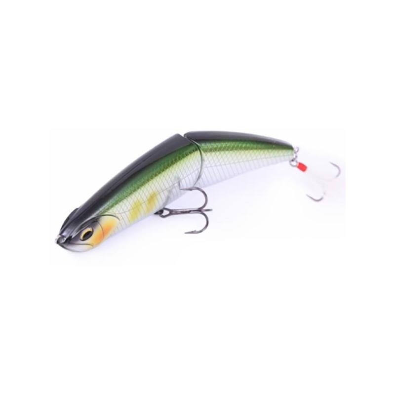 la forma dell'esca somiglia strettamente alla preda reale dei nostri carnassieri e, nonostante le sue grandi dimensioni, mantiene un equilibrio stabile durante il recupero ad alta velocità, permettendo un'azione rapida e stimolante che piace al predatore (azione ondulante). la sua azione ondeggiante, che fa ruotare il corpo (con un effetto flash), attrae inoltre i carnassieri a diverse profondità. fermandosi rapidamente dopo un'azione veloce nelle zone con ostacoli, l'esca si girerà quasi su sé stessa, potendo innescare un'abboccata rapida e un riflesso di aggressività. ancora un'esca davvero atipica come le amiamo da ns black hole.