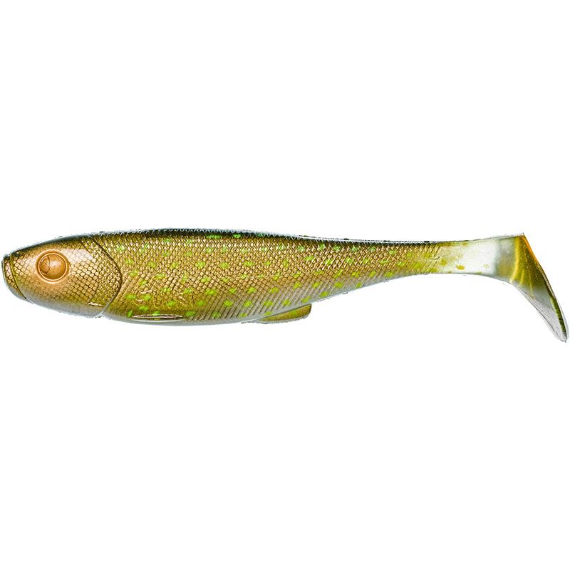È tutto detto, o quasi, nel nome! Con la sua coda sovradimensionata il GUNZILLA sposta molta acqua. Progettato per la caccia ai grossi lucci, i suoi fianchi oscillano, a bassa velocità, da sinistra a destra, scanditi dalla torsione della sua coda. Grazie alla sua morfologia perfettamente studiata, questo gigante rimane tuttavia piacevole da usare. La sua forma 'tagliente' e il suo peso relativamente 'leggero' (per un'esca di tale dimensione!) non tirano troppo sulla canna. Utilizzabile sia con montaggi di tipo 'shallow screw' (pesca lenta) sia con montaggi fortemente piombati (prospezione veloce e/o profonda), il GUNZILLA non passerà inosservato alla linea laterale di un luccio! È stata prevista una fessura dorsale e ventrale. Plastica tonica, particolarmente resistente. Un'esca GUNKI 'mostruosa', sviluppata per sedurre mostri!