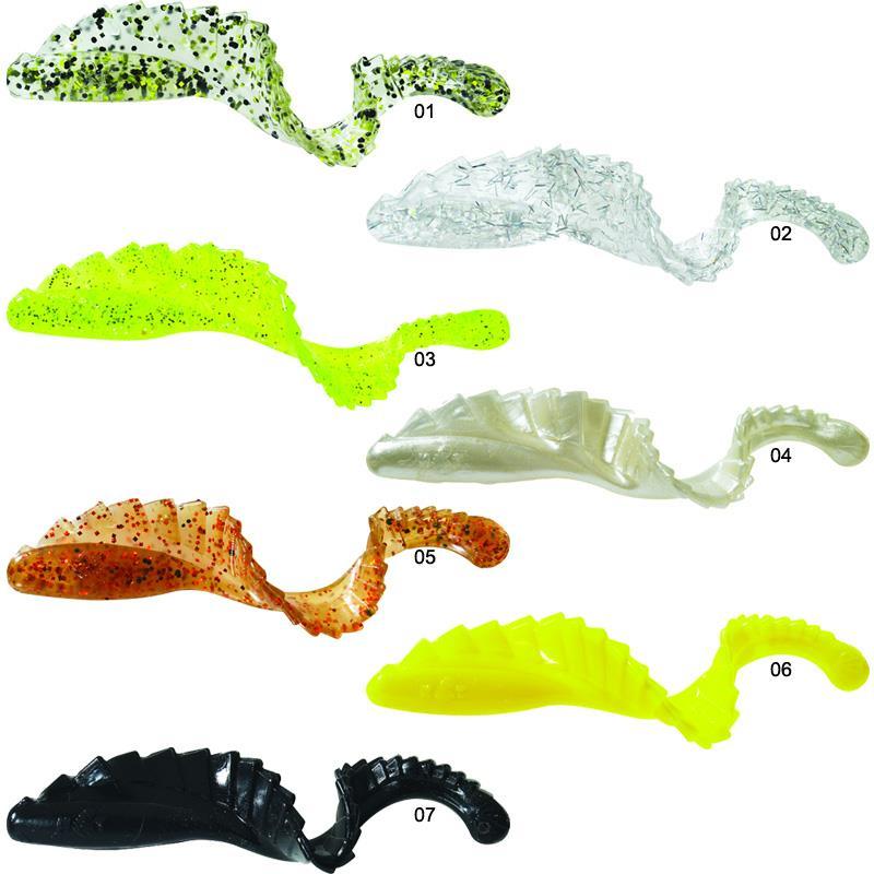 Questa esca è dotata, per tutta la sua lunghezza, di una doppia pinna dorsale a raggi. L'acqua si insinua tra le 2 pinne parallele e il suo flusso canalizzato imprime, dalla testa alla coda, onde di ondulazione nonché sequenze di apertura e chiusura delle 2 membrane che modificano continuamente il volume dell'esca e le conferiscono spettacolari movimenti di vita.