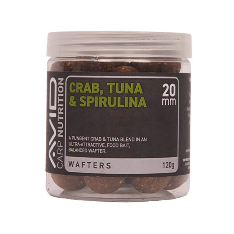 • wafters bilanciate, progettate per completare perfettamente le boilies premium crab tuna & spirulina con ingredienti attrattivi per un'efficacia superiore. • disponibili in 15mm e 20 mm • realizzato con gli stessi ingredienti di alta qualità delle boilies, arricchito con ingredienti attrattivi per un'efficacia massima. • perfetto per una varietà di presentazioni di wafter, incluso il d-rig, il german rig, lo slip-d e altro ancora.