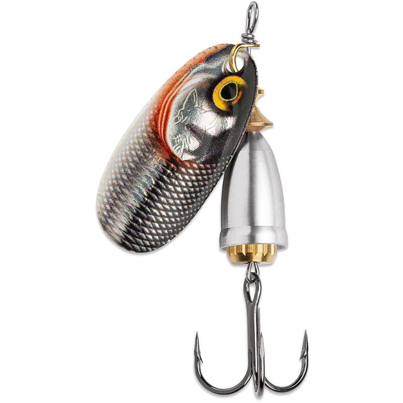 • paletta inclinata a 45° – nuota tra 0,6 e 1,2 m • corpo principale brevettato in due parti, lavorato in ottone • ingranaggio in ottone che ruota liberamente con effetto sonoro • asse in acciaio inossidabile • disponibile in finiture ottone grezzo, placcato argento o rame, verniciate e stampate • amo vmc® montato di serie • zavorra posizionata posteriormente per lanci senza grovigli e di grande precisione • paletta ovale, a farfalla, si mette in rotazione non appena tocca l'acqua