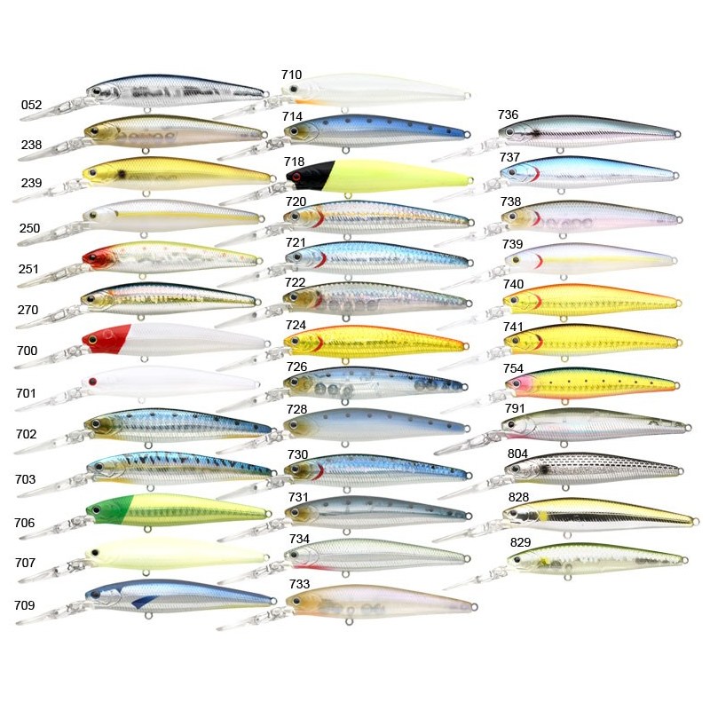 caratteristiche: - lunghezza: 9 cm. - Peso: 12,5 gr. - Azione: Suspending. - profondità di colpo: 3,00 il m. - esca armata di amo triplo - taglia n°6.