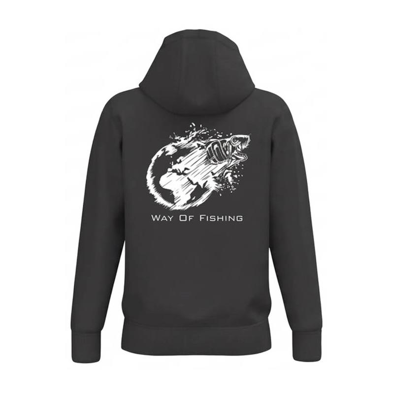 Realizzata in felpa garzata a 3 fili a base di 80 % cotone pettinato e 20 % poliestere, offre una mano morbida e un'ottima tenuta nel tempo. Il peso di 300 g/m² garantisce un'isolamento efficace senza compromettere la libertà di movimento — ideale per le sessioni di pesca con tempo fresco.