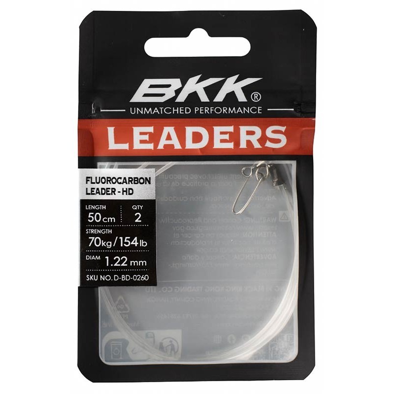Il BKK Fluorocarbon Leader-HD è realizzato con fluorocarbonio giapponese di qualità superiore, offrendo una combinazione ideale tra quasi-invisibilità sott'acqua e resistenza eccezionale all'abrasione. Ogni terminale è accuratamente crimpato per eliminare gli spigoli vivi ed è dotato di una girella in acciaio inossidabile e di una clip robusta per un montaggio semplice e sicuro. Più discreto dell'acciaio pur rimanendo in grado di resistere ai denti affilati dei predatori, il fluorocarbonio costituisce la soluzione perfetta quando discrezione e robustezza sono essenziali per avere successo nelle battute di pesca.