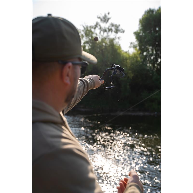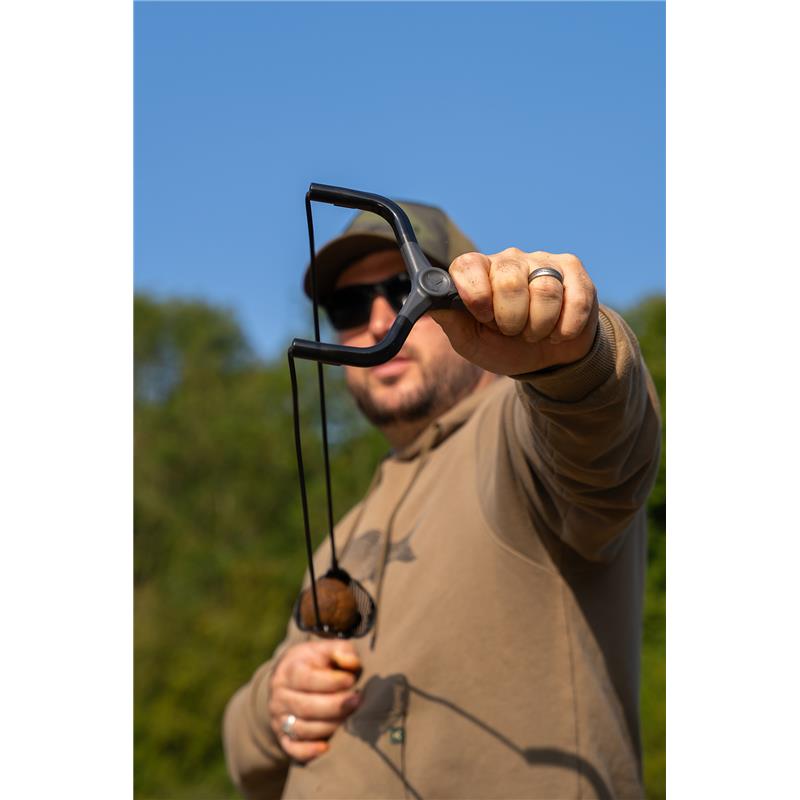 Una fionda potente con una tasca appositamente progettata per facilitare la pasturazione con palline di pastura più grandi.